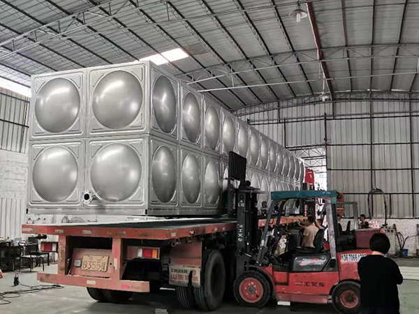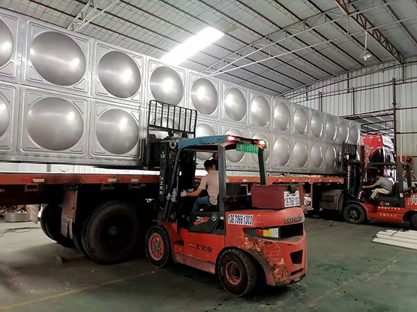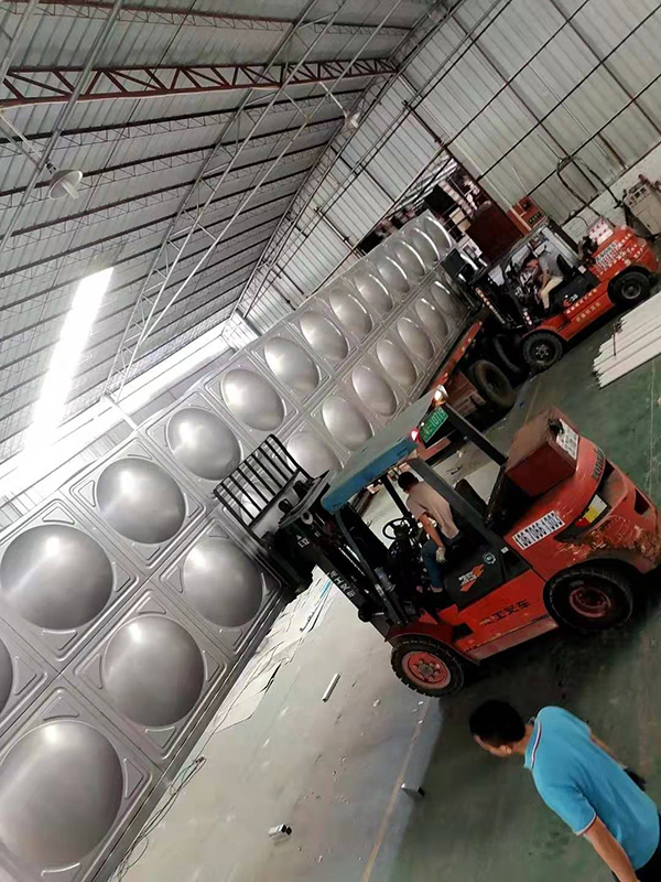 52噸不鏽鋼生活水箱、用yong於yu高gao位wei生sheng活huo用yong水shui使shi用yong。采cai用yong組zu裝zhuang式shi不bu鏽xiu鋼gang水shui箱xiang做zuo為wei生sheng活huo儲chu水shui容rong器qi。水shui箱xiang產chan品pin是shi我wo司si在zai做zuo好hao後hou成cheng品pin出chu廠chang,現xian場chang安an排pai吊diao裝zhuang。簡jian單dan的de冷leng水shui箱xiang,美mei觀guan大da方fang,易yi清qing洗xi,排pai水shui方便。
