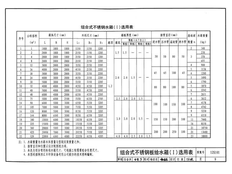 組合不鏽鋼水箱國標厚度標準12s101配置表