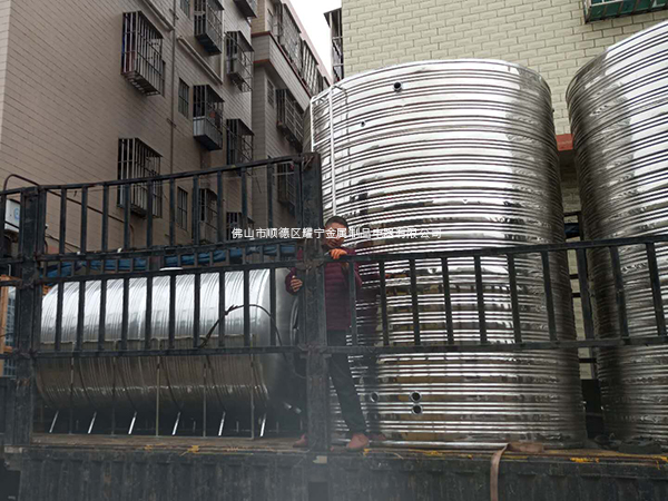 惠州惠陽區10噸圓形不鏽鋼水箱保溫水箱,5噸臥式冷水箱,某科技園配套新增空氣能熱水工程水箱,2個10噸的保溫水箱,1個5噸冷水箱,冷水箱為市政供水儲水使用的,而兩個10噸的保溫箱是接通空氣源熱泵熱水器使用,科技園宿舍樓住宿人員增加,又遇寒冬來襲,這次工程非常急,需要立馬整備出來。