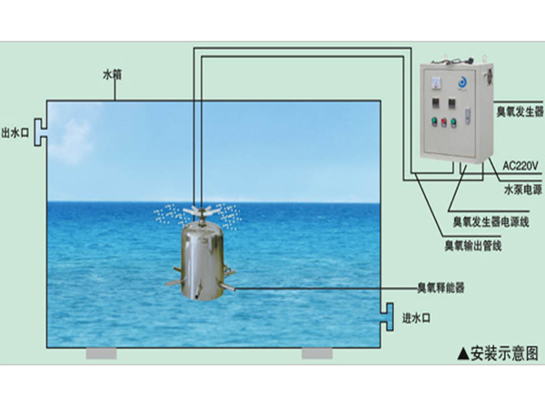 臭氧釋能器安裝在水箱底部;