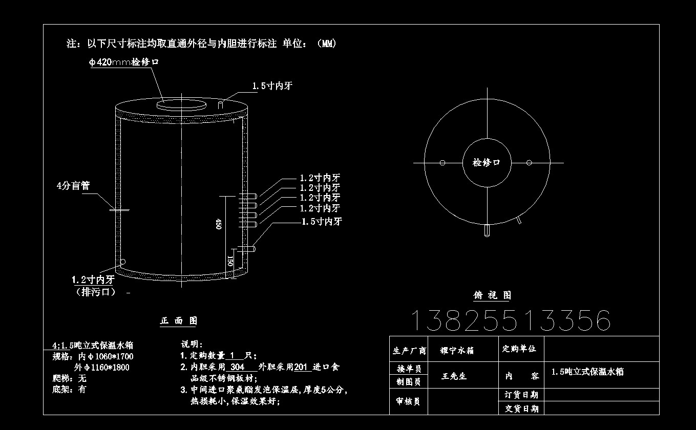 立式不鏽鋼水箱結構圖,廠家出圖紙!
